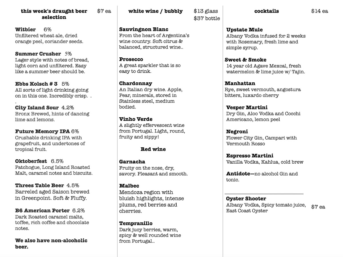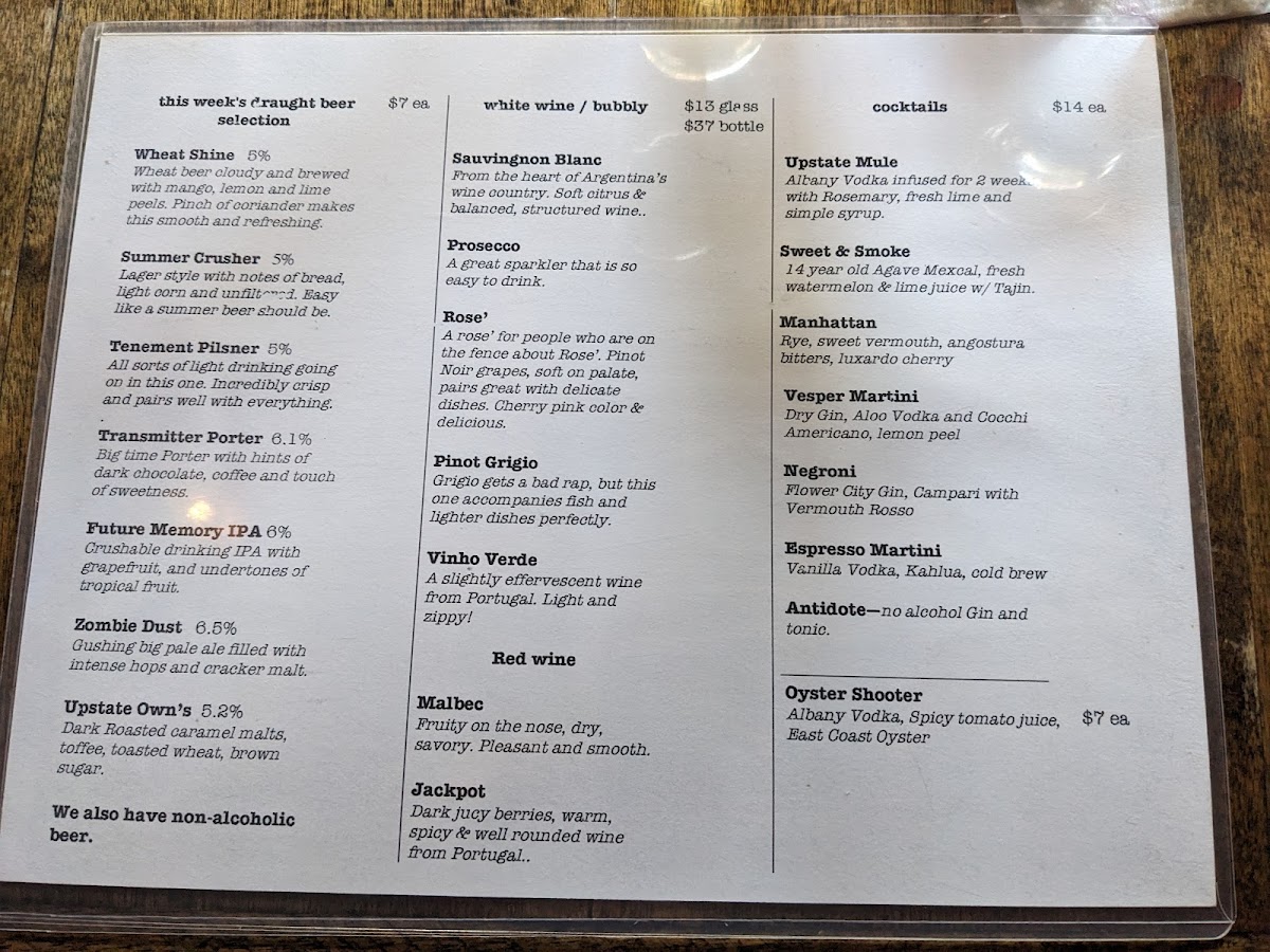 Welcome to Upstate Craft Beer & Oyster Bar, a hidden gem nestled in the heart of New York City at 95 1st Ave. This intimate oyster bar is a haven for seafood lovers, offering a delightful fusion of East and West Coast oysters alongside a carefully curated craft beer selection. With its cozy ambiance and warm, welcoming staff, Upstate Craft Beer & Oyster Bar is the perfect spot for both casual diners and serious food enthusiasts.