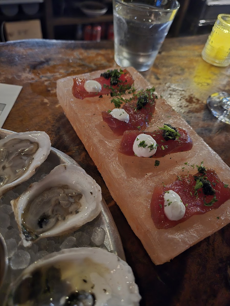 The menu is a celebration of the bounty from the sea, featuring highlights that are sure to tantalize your taste buds. Start with their daily selection of oysters, showcasing a range of varieties that whisper of the ocean's essence. For something truly special, don’t miss the uni, where luscious Maine sea urchin meets salmon roe, delicately balanced on a vibrant carrot puree with crisp toast points. If you're feeling adventurous, try the crudo & caviar: line-caught Hawaiian marlin paired with sturgeon caviar and rich crème fraîche, an experience that transports you straight to a coastal paradise.